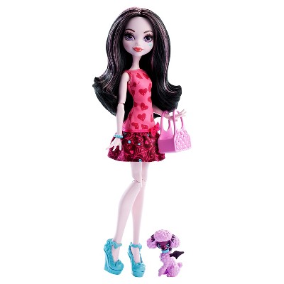 ¡Las monstruitas de Monster High tienen las mascotas domésticas más lindas y espeluznantes! Celebra a estos adorables amigos bestiales con la muñeca Draculaura y su adorable cachorro. Ella lleva un vestido de precioso con la impresión gráfica en sus colores temáticos y accesorios de legado de inspiración y tiene un portador de animales para asustar aún más en el juego de mascotas. La hija de Drácula, la muñeca Draculaura es hermosa que lleva un vestido con un estampado en tonos de rosa con un corazón de impresión, dobladillo con un moño. Los accesorios incluyen un brazalete azul y azul zapatos de tacón con un moño adornado, además de un portador de color rosa es perfecto para su perro cuando tiene que volar. Su mascota es tan monsterrífica. La muñeca de Draculaura se ve fantástica con su Caniche de color púrpura con el pelo de color rosa y un collar azul. La muñeca de Frankie Stein y su peluche, como el animal doméstico. Lleva un vestido electrizante con la impresión gráfica en sus colores temáticos y los accesorios de legado, viene con una bolsa temática para deslumbrar aún más en el juego. La hija de Frankenstein, la muñeca Frankie Stein se vez de alto voltaje en un vestido a cuadros en sus colores con un cinturón rojo. Un accesorio plateado y zapatos decorados con pernos rojos son voluminosos, y una bolsa con forma de carrete con cruz médica es perfecta para cuando las cosas se deshacen. Su mascota es tan monstruosa. El oso de peluche de color azul de Frankie Stein ha sido cosido lindo con sus puntadas, pernos y antena.Ya se trate de la hora de comer o de tiempo de juego, las monstruitas de Monster High saben cómo vivir con sus amigos bestiales! Recoge a todos ellos para una colección completa monstruosa (Se venden por separado, sujeto a disponibilidad). Incluye la muñeca Draculaura a la moda y accesorios, accesorio del animal doméstico que lleva del perro y un portador del animal doméstico al igual que Frankie Stein que lleva su bolso temático por sí algo se descose. Las muñecas no incluyen peana. Colores y decoraciones pueden variar. Apto para niños de 6 años en adelante.
